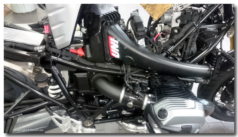 For the nineT, replacing the air filter element requires the lifting of the fuel tank along with a host of other work like disconnecting the alarm, removing the intake snorkel, disconnecting fuel hoses and fuel pump wires.