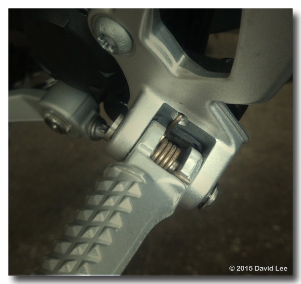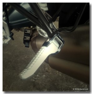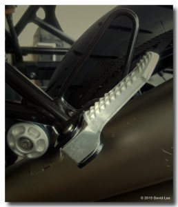 [Jan 2015 @ 2,900km] – Swapped the foot pegs for the rider and pillion with the S 1000R bike.  It’s a direct swap over with minor issues. The new pegs are all aluminium and has a smaller footprint. Those original rubber pegs will wear out fast, only 3,000km and wear is visible already.